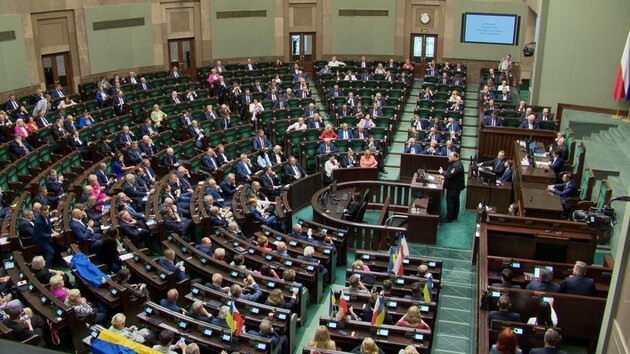 Кроме депутатов в нижней палате парламента его выступление также послушали спикер Сената Томаш Гродский и сенаторы.