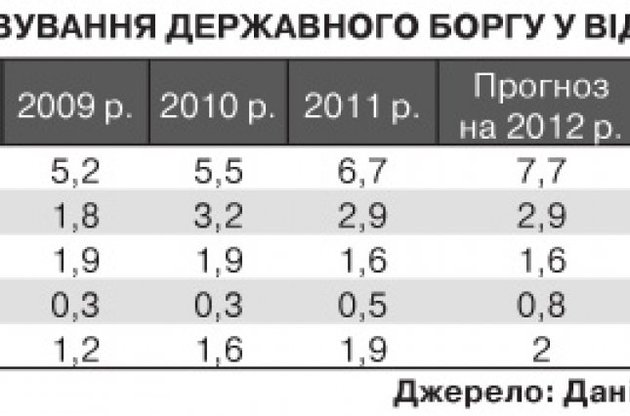 Уже сейчас обслуживание государственного долга в 35 млрд грн превышает расходы из Государственного бюджета на образование и здравоохранение, вместе взятые, и постоянно возрастает как в абсолютном значении, так и относительно общего фонда бюджета.