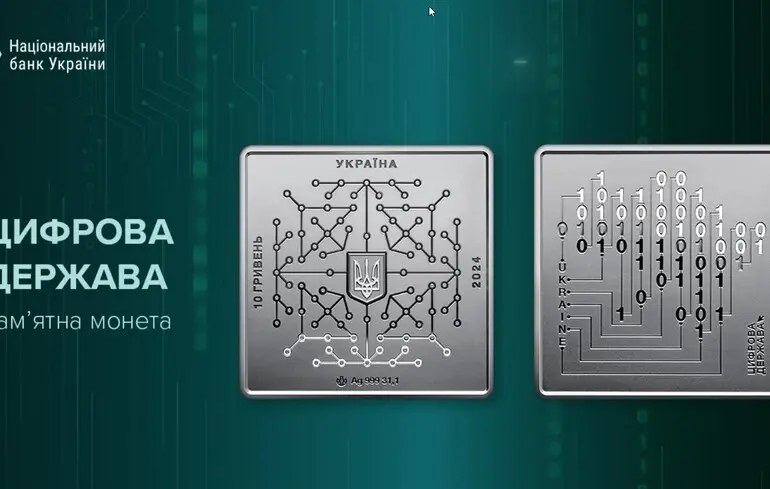 Национальный банк Украины выпустил памятную серебряную монету. Название новой памятной монеты из серебра - «Цифровое государство». Ее представил Председатель Национального банка Андрей Пышный во время конференции UAFIN.TECH 2024, собравшей вместе представителей государственных регуляторов, финансовой и технологической сферы обсудить современные тренды инновационного развития страны.