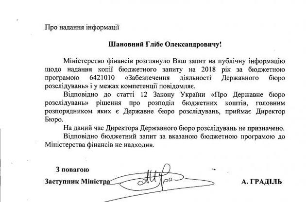 В Государственном бюджете на 2018 г. на функционирование Бюро предусмотрено свыше 650 млн грн, которые будут направлены на оплату труда, горючего, коммунальных услуг. Однако распределение, как отмечает Монастырский, должно было выглядеть лучше - в соотношении 80/20 между расходами потребления (зарплата, коммунальные платежи и т.п.) и расходами развития (оплата мебели, техники, оборудования). Мы попытались узнать в Министерстве финансов - кто отправлял бюджетный запрос, ведь его принимает директор Бюро, который еще не избран. Как это ни странно, но бюджетный запрос в Минфин не поступал, а деньги фактически "от руки" вписаны в соответствующую бюджетную программу 6421010 "Обеспечение деятельности Государственного бюро расследований".