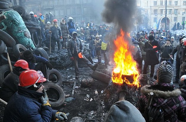 Полтора месяца Майдан мирно размахивал европейскими флагами и скандировал: "Україна - це Європа!". Сегодня европейский флаг можно обнаружить разве что на новогодней елке, а на Майдан вместо европейской символики несут каски, биты, шины и противогазы. Сегодня один из главных лозунгов - "Разом - і до кінця!". Нет, мы, безусловно, признательны европейцам, что Соглашение "все еще на столе". Вот только Янукович уже давно повернулся к этому столу спиной, а на Майдане в данный момент актуальнее те столы, которые можно использовать для постройки баррикад или разжигания костров.