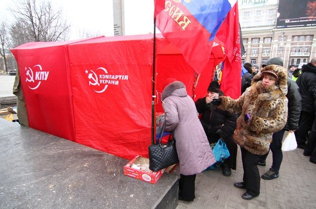 Активизировались пророссийские маргинальные организации. На площади Ленина у подножия памятника, соответственно, Ленину возник палаточный городок, где собрались неприкаянные "защитники Донбасса". Несмотря на призывы властей к спокойствию, парни беспокойны. Они записываются в некое "ополчение" и провоцируют конфликты, пока по большей части словесные. И своими силами организовывают акции сопротивления "нелегитимной власти".