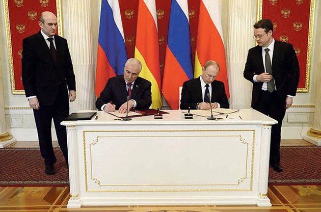 Именно формальное, показательное договорно-правовое закрепление защиты Абхазии и Южной Осетии Россией могло быть одной из целей этих договоров. Предоставление "щита" для непризнанных государств, созданных в итоге наступления российских войск, государств, территорию которых международное сообщество считает частью Грузии - это жест Кремля. Его смысл - демонстрация, что постсоветское пространство является "сферой интересов" России, и в пределах этой сферы она готова на любые действия вне зависимости от их правовой обоснованности. Версию "жеста" подтверждает и дата подписания - в день очередного раунда переговоров в Женеве по Южному Кавказу и ровно через год после аннексии Крыма.