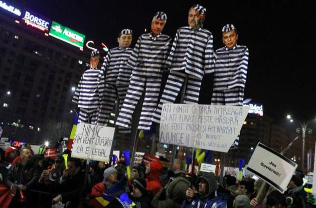 Когда на площадях румынских городов собрались многотысячные митинги, представители власти были вынуждены ответить. Премьер Гриндяну в обращении к народу 4 февраля заявил, что "Румыния сейчас разделена на два лагеря", и что он готов принять меры для отмены указа, дабы не раскалывать нацию. Если судить по событиям на улицах Румынии, это утверждение кажется смешным: сотни тысяч вышли за борьбу с коррупцией и выдвигали требования отставки правительства, тогда как контрпротесты собирали не более пары тысяч человек. Вместе с тем, никак нельзя забывать о пассивной части населения, обеспечившей социал-демократам на выборах 45% голосов.