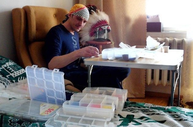 Ну а пока 37-летний Андрей живет привычной для себя жизнью творческого человека - создает знаковые произведения искусства, преимущественно в шаманской технике мексиканского племени Уичоль: скульптуры, фигурки, маски, одежда, посуда, украшения из бисера, мозаики и кожи. С другими индианистами он снимался в фильме Михаила Ильенко "ТойХтоПройшовКрізьВогонь". Именно так его и называют друзья в Фейсбуке. Перед 1 сентября Андрей, переживший компрессионный перелом позвоночника и осколочные ранения ног, встал на ходунки и отвел 6-летнего сына Никиту в первый класс.