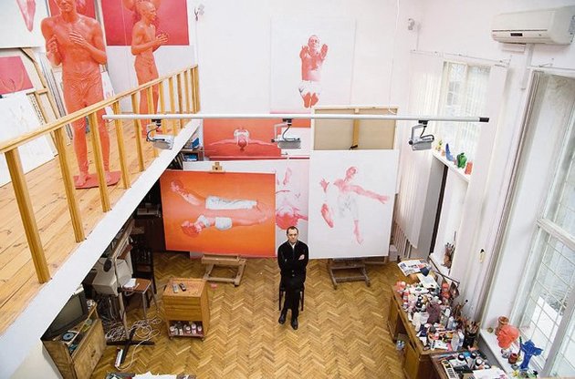 Вы можете наведаться к Виктору Сидоренко в тот день, когда он ничего не ест, потому что восстанавливает израсходованную за неделю художественную энергию. Вы так и будете сидеть на длинной деревянной скамье за длинным деревянным столом - наверное, как в украинских школах ХІХ века. Он же будет сидеть меж двух исполинских голов с глазами Святых Апостолов. Он будет все говорить и говорить, а вы будете слушать. Часами. О том, как его родителей депортировали в Казахстан, как выучил свой главный постулат искусства, как представлял Украину в Венеции и почему создал Институт проблем современного искусства в Киеве. Когда вы наведаетесь в его мастерскую с выбеленными стенами возле церкви Василия Великого, будет именно так.