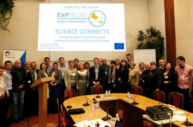 15 мая в рамках ЕаР PLUS проекта был проведен семинар Science Connects: strengthening the Interaction between Researchers in Ukraine and Scientific Diaspora, участие в котором приняли более 100 научных работников из Украины, представители МОН, президиума НАН Украины, а также представители научной диаспоры из Германии (The UKRAINE Academic Network), Великобритании, Нидерландов, США.
