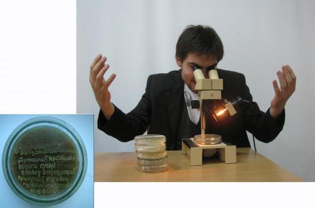Заседание предполагало еще не упоминавшееся нигде направление - литературное биоискусство. Я, например, проводил перфоманс - читал биопоэзию под микроскопом. Тексты были написаны бактериями и дрожжами на питательных средах в чашках Петри. Стихи выросли в термостате. Они были о чувстве, любви, но составлены так тонко, с использованием биологических терминов, что их могли понять лишь клеточные биологи. Также мы зачитывали генетические задачи собственного авторства - комического, иронического, абсурдного или детективного содержания. Еще, помню, при участии членов университетского ансамбля песни и танца "Черемош" были представлены несколько перфомансов - девушки пропевали названия этапов синтеза белка, которые отвечали частям проведения нашего заседания. Были еще интерактивные инсталляции с агарозными средами возле львовских памятников, но, кажется, они тогда не имели ожидаемого резонанса.
