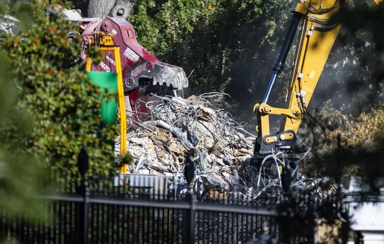 Как видно на опубликованных фото, все Восточное крыло Белого дома снесли, чтобы освободить место для нового сооружения площадью более 8 тысяч квадратных метров.
