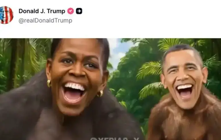 Президент США Дональд Трамп опубликовал откровенно расистский видеоклип, в котором бывший президент Барак Обама и бывшая первая леди Мишель Обама изображены в виде обезьян, а затем удалил его после необычно жесткой критики — в частности со стороны представителей собственной партии, пишет The New York Times.