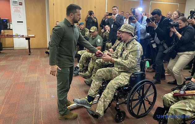 Президент Украины Владимир Зеленский посетил Университетскую больницу Статен-Айленда в Нью-Йорке, где встретился с тяжелоранеными украинскими воинами, проходящими здесь лечение и реабилитацию.
