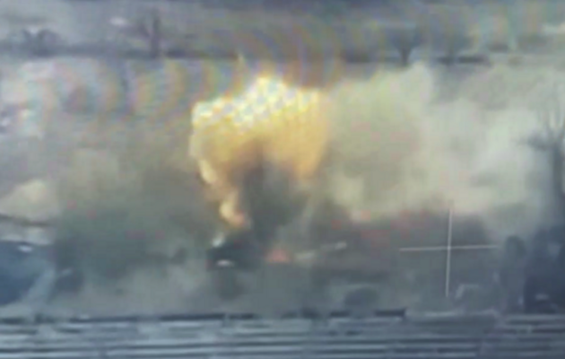 Стерненко опубликовал видео работы дрона по грузовику с россиянами, уничтоженного бойцами Центра специальных операций «А» Службы безопасности Украины.