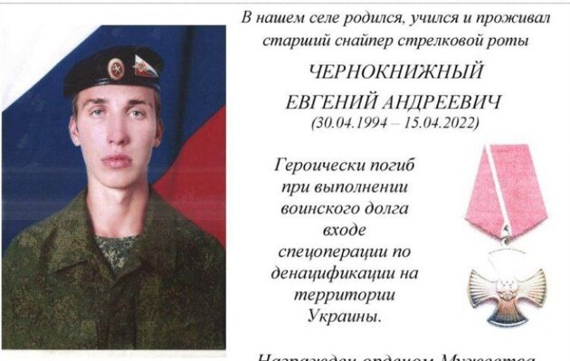 Аналитики портала OSINT разыскали родственников российского оккупанта Евгения Чернокнижного - по данным агентства Reuters, в марте прошлого года он вместе с еще одним россиянином совершили ряд изнасилований в Броварском районе, среди жертв тогда были 4-летняя девочка и ее мать, над которыми оккупанты издевались на глазах у отца. По данным аналитиков, военнослужащего 15-й отдельной мотострелковой бригады уже ликвидировали.