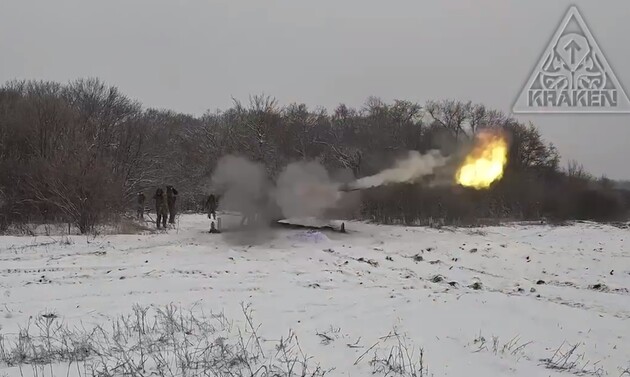 Харьковское разведывательно-диверсионное подразделение ГУР Минобороны Kraken показало январское видео работы артиллеристов по скоплению российских военных под Соледаром. Видео опубликовано в Telegram-канале подразделения.