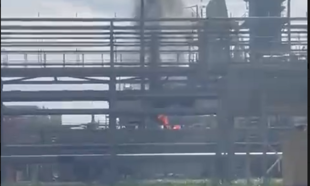 "Он прилетел в одну из установок и начался пожар, - говорится в сообщении. - На место отправились экстренные службы".