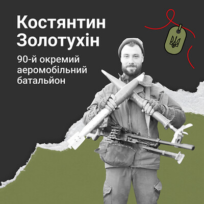 Разведчик Константин Золотухин, позывной «Золотой», погиб 7 марта 2022 года во время обороны Харьковщины от оккупантов. В тот день его группе дали задание уничтожить вражеские танки, обстреливавшие город Изюм. При проверке вооружения оказалось, что аккумулятор к NLAW не работает. Константин пошел за новым. Когда перебегал остановки автовокзала, попал под вражеский обстрел из системы «Град». Погиб на месте. Через четыре дня бойцу должно было исполниться 29 лет.