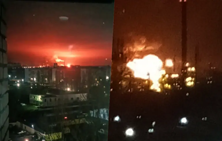 По информации источников и видео, опубликованным в социальных сетях, видно, что на заводе загорелся большой резервуар.
