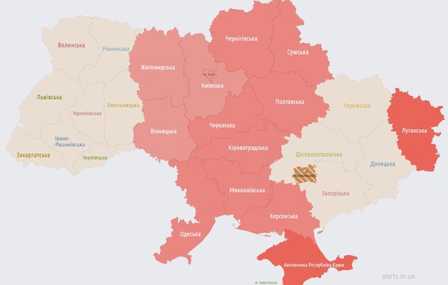 03:15. Тревога распространяется на Винницкую и Черновицкую области. Сообщают о работе ПВО на Киевщине та Черкасщине.