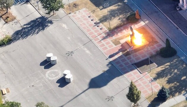В Новой Каховке Херсонской области украинские партизаны подожгли памятник Ленину.