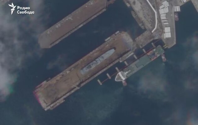 Большой десантный корабль Военно-морского флота России "Оленегорский горняк", который был поврежден морским беспилотником на прошлой неделе, отбуксировали на ремонт в плавучий док в порту города Новороссийск на побережье Черного моря. Новый спутниковый снимок опубликовала российская служба "Радио Свобода".