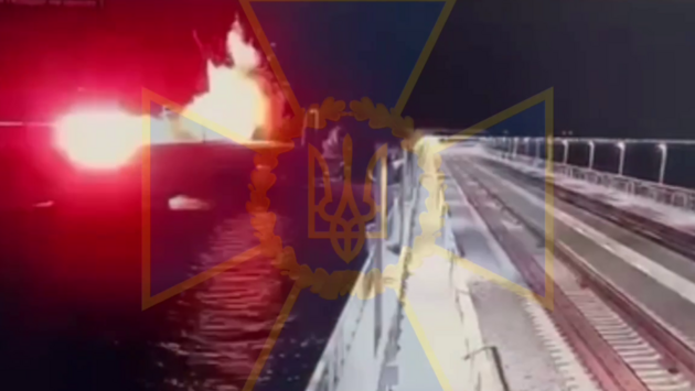 После публикации CNN эксклюзивных кадров удара по Крымскому мосту экспериментальным беспилотником, в сети также появилось видео удара дроном по автомобильной части конструкции, незаконно построенной россиянами через Керченский пролив.