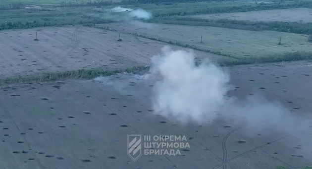 "Танки 3-й отдельной штурмовой бригады разнесли посадку с россиянами во время штурма позиций врага на бахмутском направлении", - подписал видео военачальник.