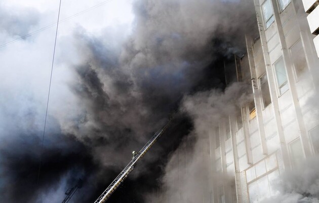 В Нацполиции сообщили, что россияне попали в типографию, цех по производству мебели и лакокрасочной продукции. Пожар охватил две тысячи квадратных метров.