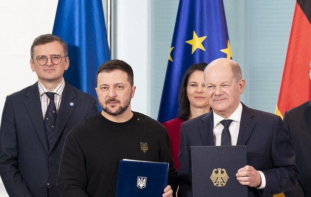 Канцлер Германии Олаф Шольц и президент Украины Владимир Зеленский во время встречи в Берлине в пятницу, 16 февраля, подписали соглашение о долгосрочных обязательствах в сфере безопасности, сообщает Reuters.