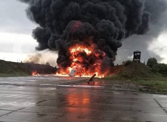 "Поврежден по меньшей мере один самолет, сообщило Минобороны РФ. В сети, возможно, появилось фото военного аэродрома "Сольцы" Новгородской области после удара беспилотника. На фото виден полностью сгоревший Ту-22М3".