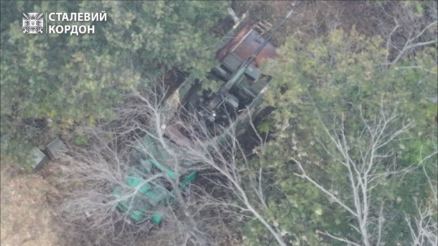 Украинские пограничники штурмовой бригады "Стальная граница" с помощью беспилотника нанесли удар по устаревшему советскому зенитно-артиллерийскому комплексу С-60, который российские оккупанты решили применить на купянском направлении. Министр внутренних дел Украины Игорь Клименко показал в Telegram видео "охоты" на вражескую систему.