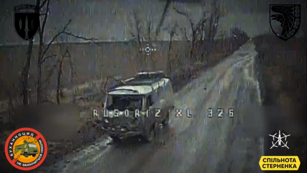 Бойцы 93-й отдельной механизированной бригады «Холодный Яр» с помощью FPV-дрона уничтожили микроавтобус УАЗ СГР «Буханка» с российским военным в кабине.