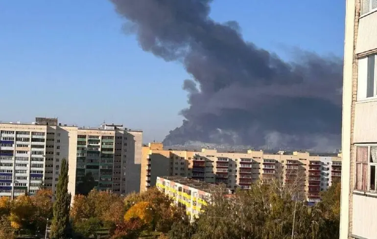 Местные паблики опубликовали видео после ударов по НПЗ, на котором видно, как оттуда поднимается густое облако дыма.