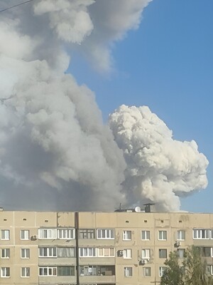 Около 4:40 местные паблики сообщили, что после взрывов в одном из районов города произошел пожар. Что горит пока неизвестно. Местные могут видеть зарево от пожара и задымление.
