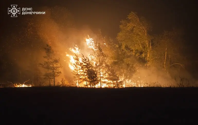 В Донецкой области после авиаудара пожар охватил более 150 гектаров хвойного леса