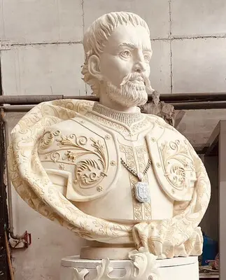 В Киеве впервые показали памятник гетману и меценату Ивану Мазепе, над которым работают известные украинские скульпторы Олесь Сидорук и Борис Крылов - они презентовали свою промежуточную работу над бюстом.
