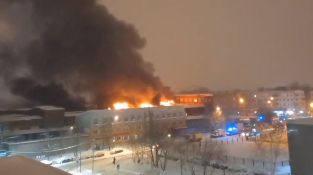 В Москве пылает здание завода специализированных автомобилей: слышны "хлопки"