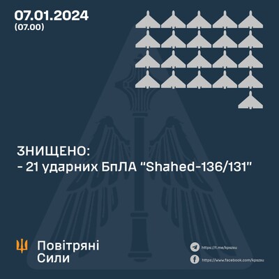 В ночь на 7 января ПВО сбила 21 из 28 "шахедов", остановить баллистические ракеты не удалось - Воздушные Силы
