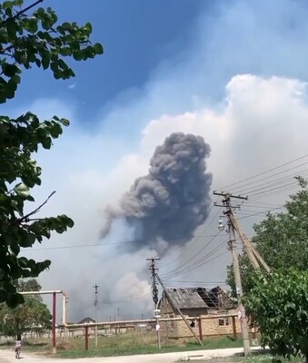 Детонация боеприпасов была столь мощной, что российским оккупационным войскам пришлось эвакуировать жителей близлежащих населенных пунктов и приостановить движение по железной дороге.