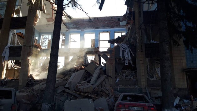Так, пгт Дворична враг обстрелял из ЗРК С-300. Вражеский снаряд попал в админздание. Мужчина и женщина получили ранения.