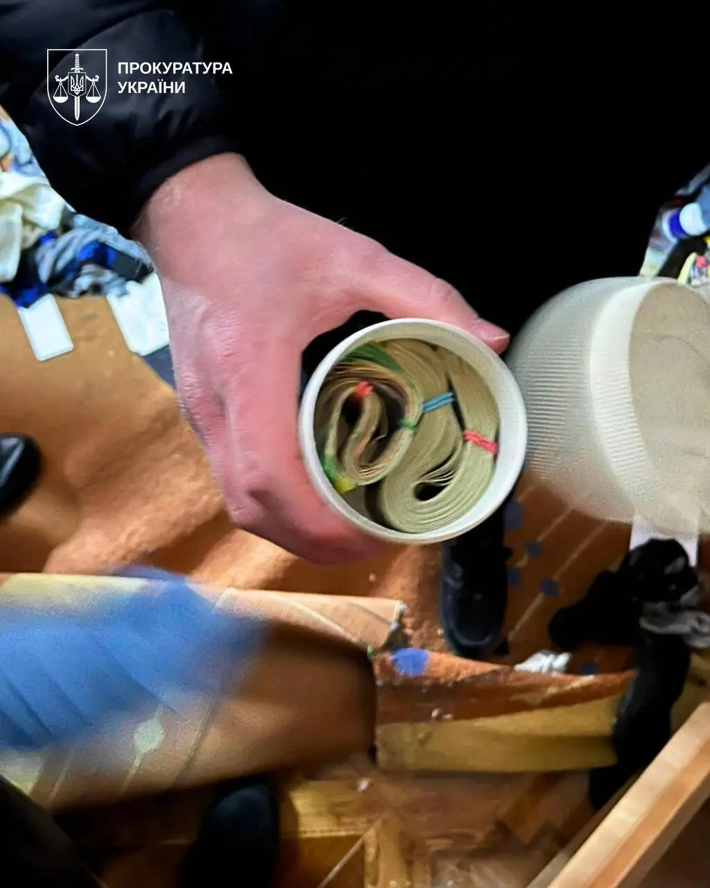Во время обыска 20 апреля 2026 года изъято более 240 тысяч долларов, более трех тысяч евро, почти 1,3 млн форинтов, более 260 тысяч гривен. Среди изъятого - меченые купюры, переданные в качестве аванса в рамках контроля за совершением преступления. Готовится ходатайство об аресте имущества.