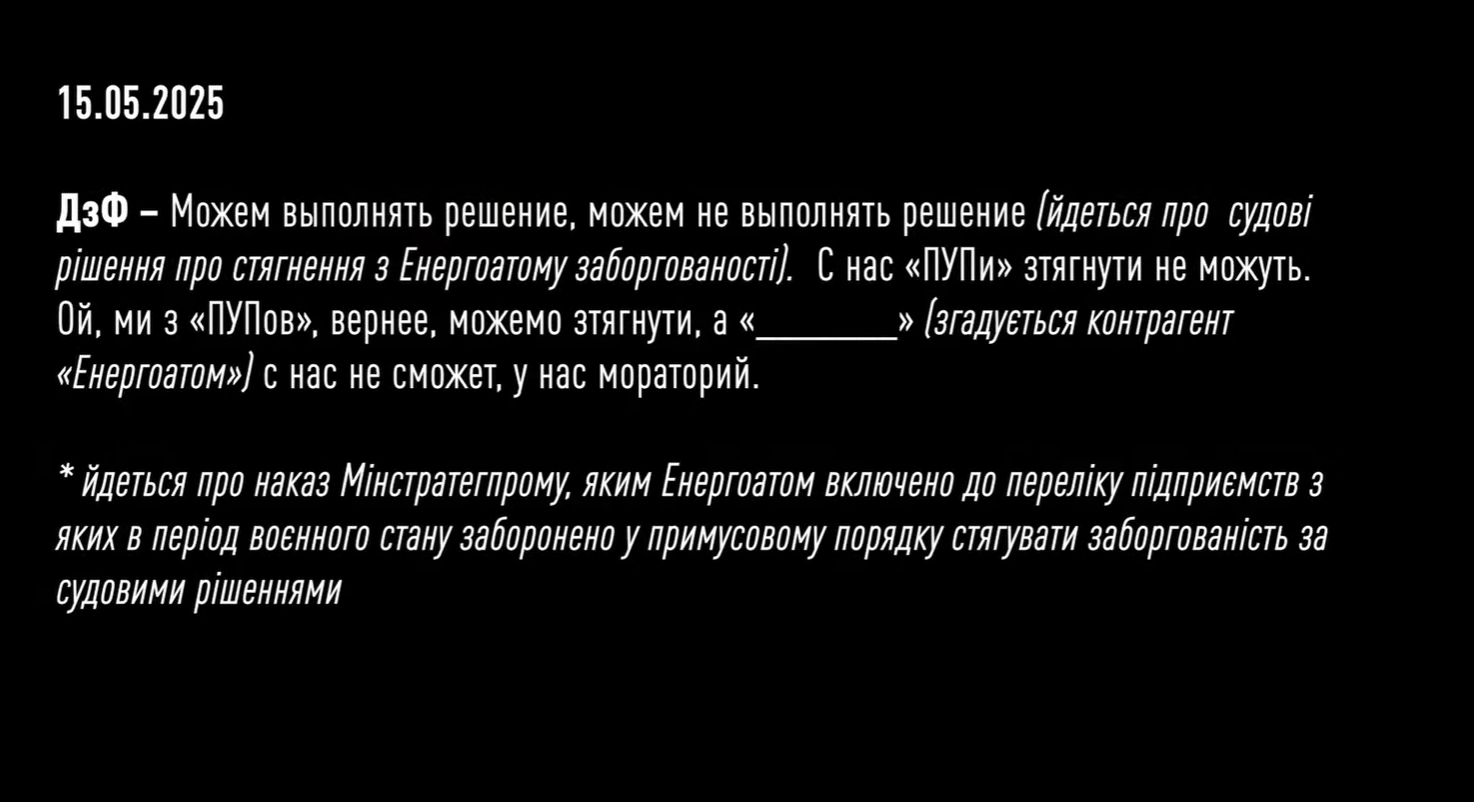 Директор по финансам "Энергоатома" и советник министра, по данным НАБУ, знал, что с компании невозможно взыскать средства с помощью решения суда. Это также создавало дополнительные условия для вымогательства откатов за уже поставленную продукцию.