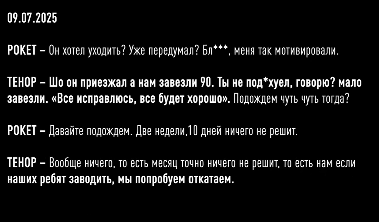 В частности, во время одного из обнародованных разговоров Рокет и Тенор обсуждали механизм давления на контрагентов, благодаря которому и создавалась предпосылка для получения от них "откатов".