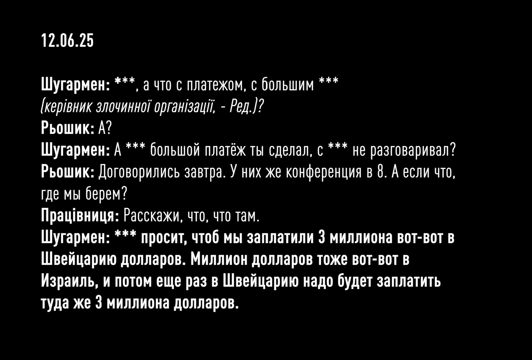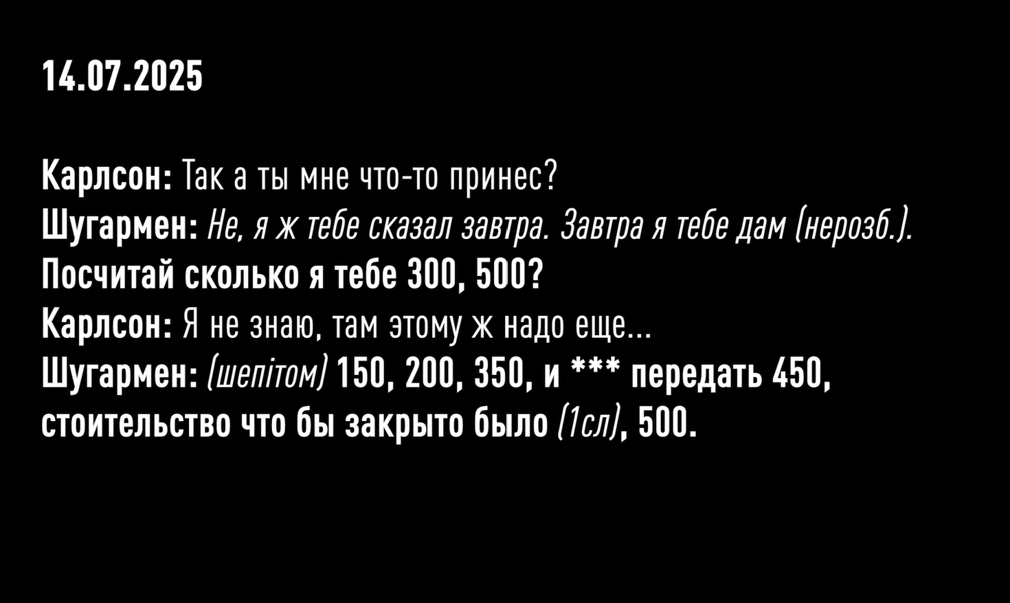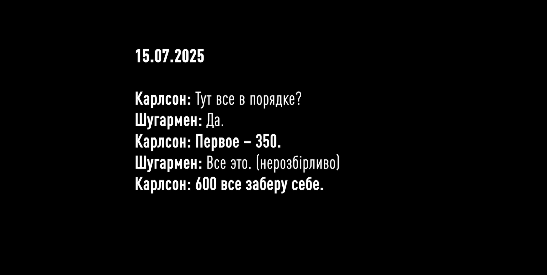 На пленках зафиксировали, как после вызова в Офис генпрокурора, Карлсон напомнил Шугармену о том, что нужно передать деньги.