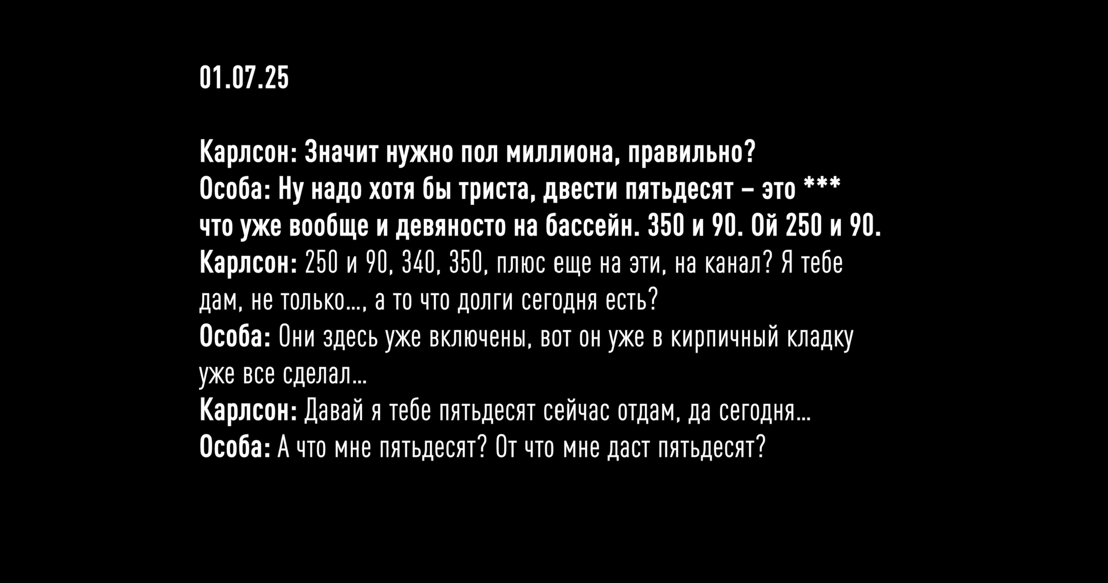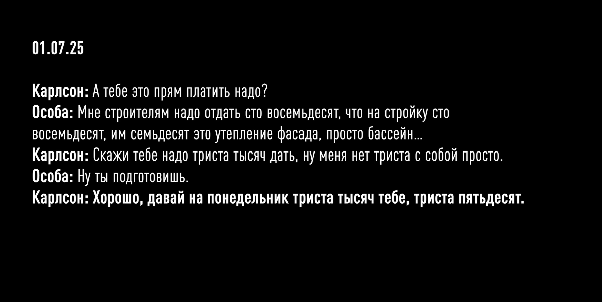 Более того, именно в этой квартире, как выяснило Бюро, Карлсон во время личных встреч с руководителями центральных органов исполнительной власти, без каких-либо законных на то оснований, осуществлял на них влияние. В частности, это делалось для удовлетворения частных интересов в энергетической и оборонной сферах.