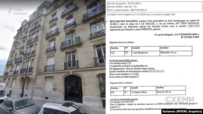 По их данным, объекты зарегистрированы на разные французские компании, конечным бенефициарным владельцем которых является Лариса Черток. Сестра Коломойского контролирует квартиры и апартаменты по адресу 1 Rue Beethoven через фирму из Монако Beethoven Holding.