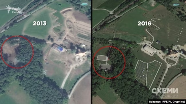 "«Пристройка под названием «амбар» – предназначена для превращения в здание, жилую площадь на двух уровнях с оздоровительной зоной и открытым бассейном», «небольшое здание в саду, предназначено для превращения в садовый сарай или место для барбекю», «прилегающий ландшафт после преобразование будет включать теннисную, баскетбольную и футбольную площадки». Спортплощадки, согласно спутниковым снимкам, появились у замка в 2016 году", – отметили в расследовании.