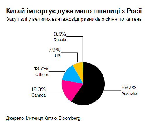 Вместо российской пшеницы Китай предпочитает австралийскую (59%), канадскую (18%) и американскую (9%).