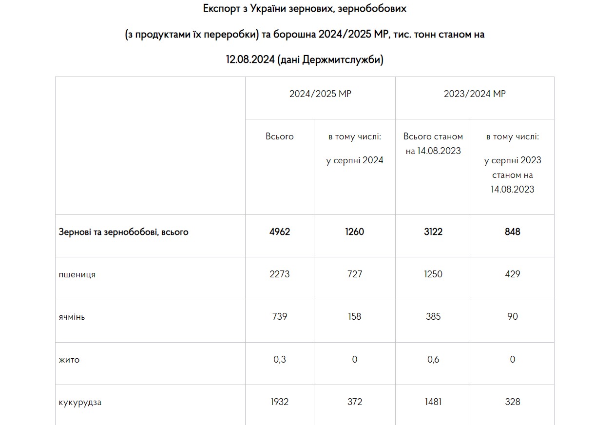К концу первой декады августа украинские аграрии смогли собрать, подготовить и экспортировать 4,9 миллиона тонн зерновых культур. Эти подсчеты выполнены в маркетинговом 2024-2025 году. Это более чем на 50% больше, чем в прошлом маркетинговом году, когда объем экспортных поставок составлял 3,1 млн тонн на этот же период, сообщает Минагрополитики Украины.