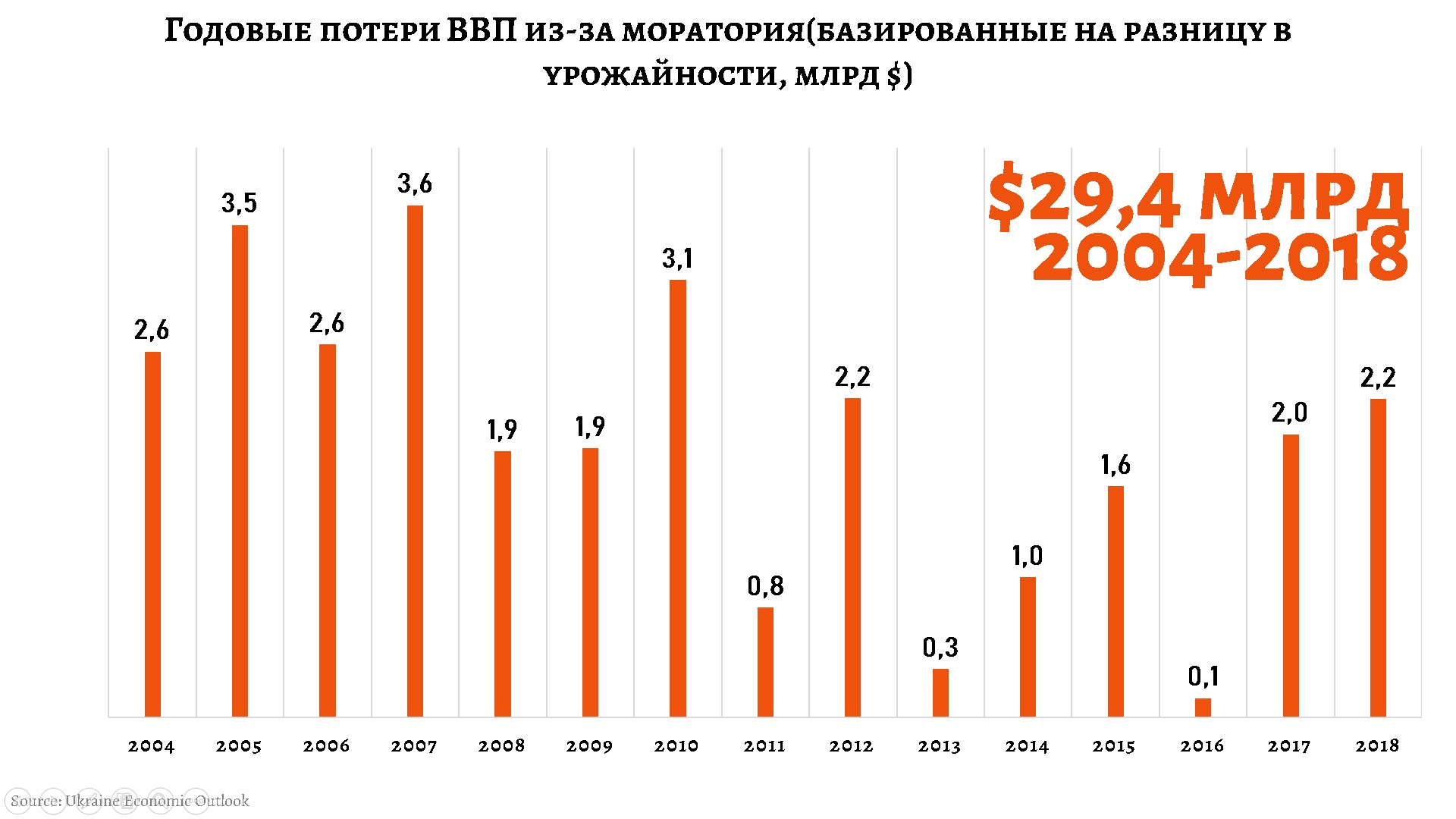 К слову, именно указанный разрыв в средней урожайности между Украиной и постсоветскими странами, где успешно функционирует рынок земли, можно использовать как инструмент количественной оценки потерь из-за моратория. Так, по моим расчетам, мы говорим о сумме в 30 млрд долл. за 2004–2018 гг. И это без учета амортизации грунтов.