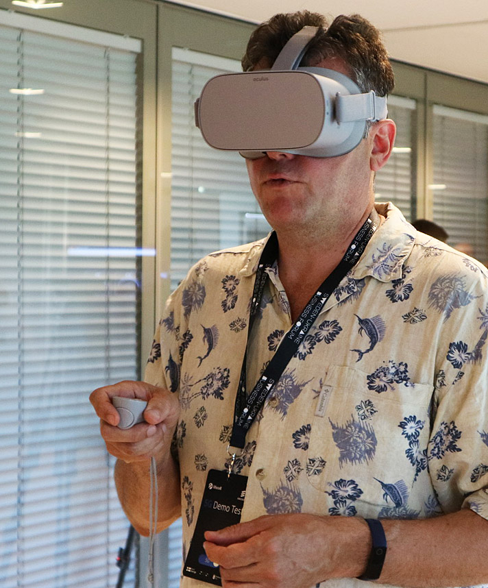 Мгновенная конференц-связь через очки виртуальной реальности позволяет взаимодействовать с удаленным модератором, который при демонстрации находился в Швеции, и все происходит так, будто все находятся в одной комнате. Эта зона продемонстрировала, как 5G может способствовать виртуальному взаимодействию, сотрудничеству и обучению без границ, одновременно минимизируя затраты и повышая производительность.